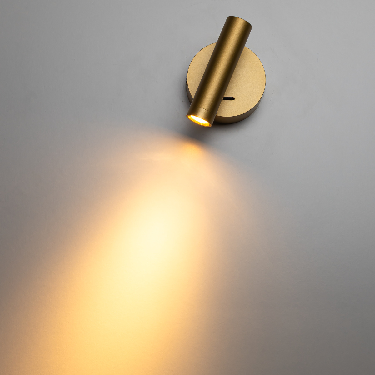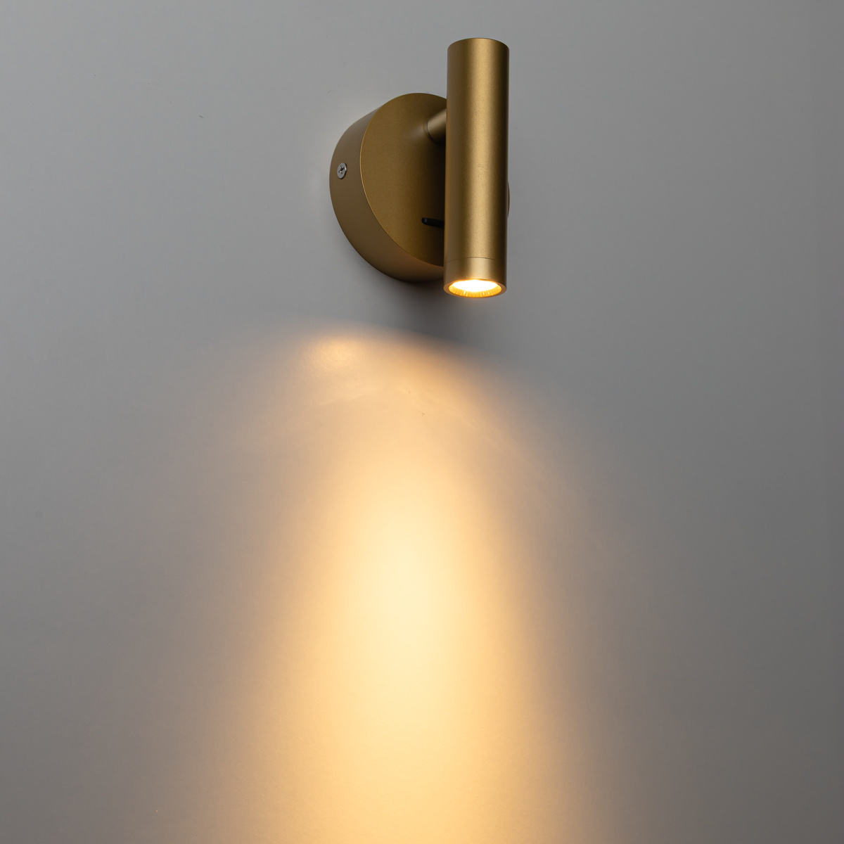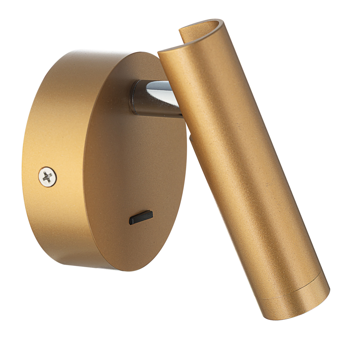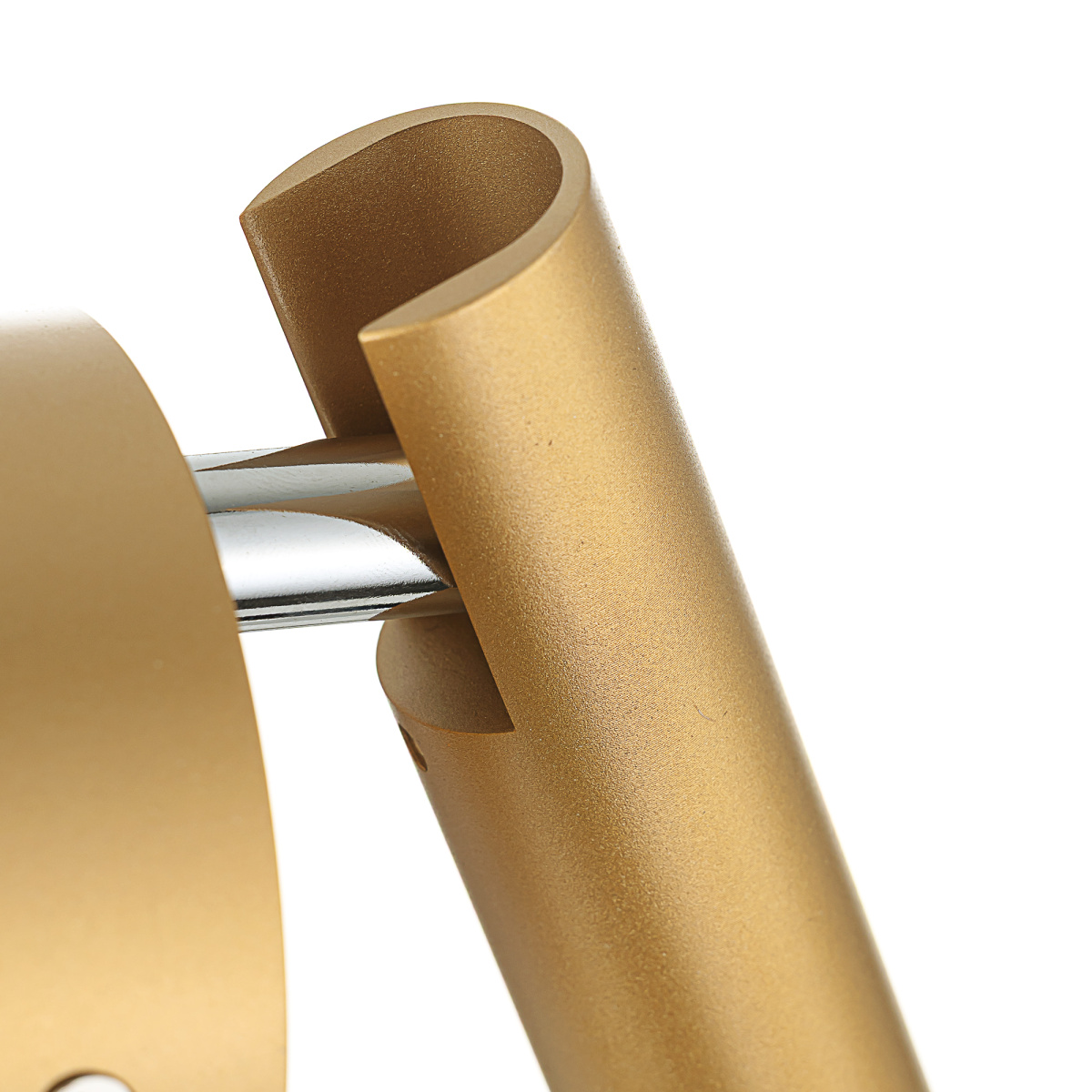 Каркас изделия — металлический, популярного золотистого оттенка, основание круглой формы, диаметром 78мм. LED-модуль цилиндрической формы, со встроенным светодиодом и рассеивателем из оптического полимера, имеет поворотное крепление, позволяющее регулировать направление светового потока.