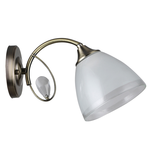 Эстетичное бра De City Ариадна 105020901 выполнено в стиле модерн. Металлическое основание отличается оригинальной формой, напоминающей стебель цветка. Хрустальный декоративный элемент грушевидной огранки дополняет плафон, визуально схожий с цветочным бутоном. Особое изящество модели придает цветовая гамма: белый матовый плафон имеет глянцевый кант, а основание в оттенке латуни дополнено патиной.