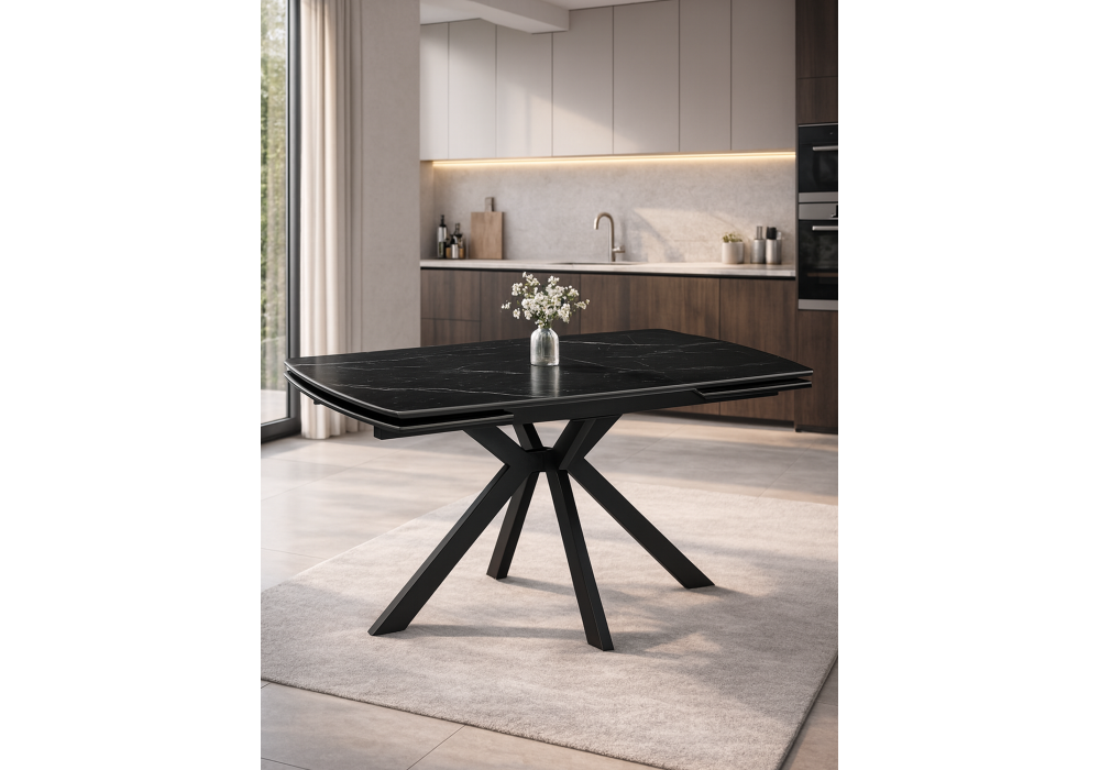 Керамический стол раздвижной 120(180)x8 Woodville Катчел-2 черный мрамор / черный 632673 в Казани