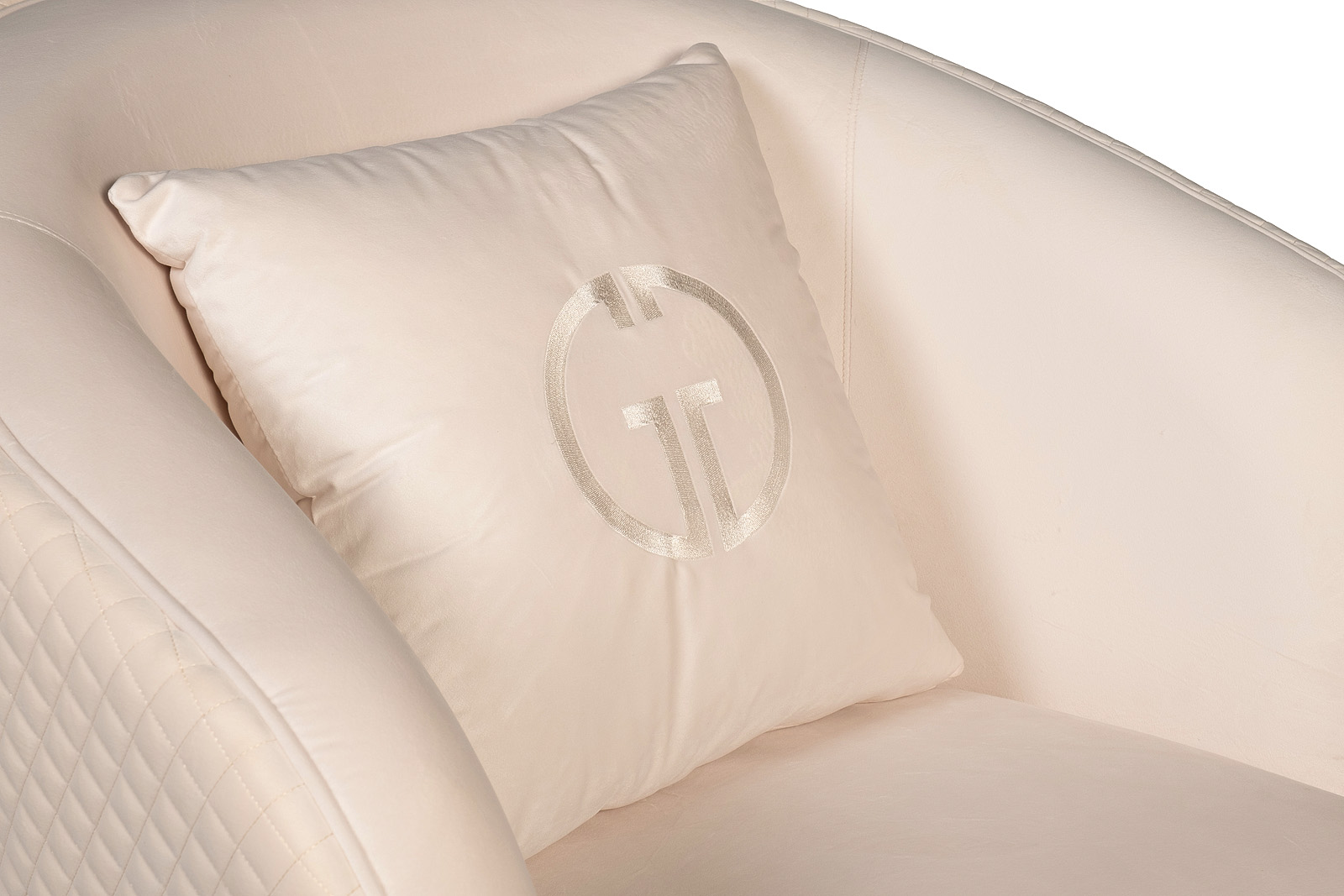 Мебель светлых оттенков - современный тренд. В данном кресле сочетается мягкий велюр нежного оттенка слоновой кости, золотое основание из нержавеющей стали и простроченная спинка.