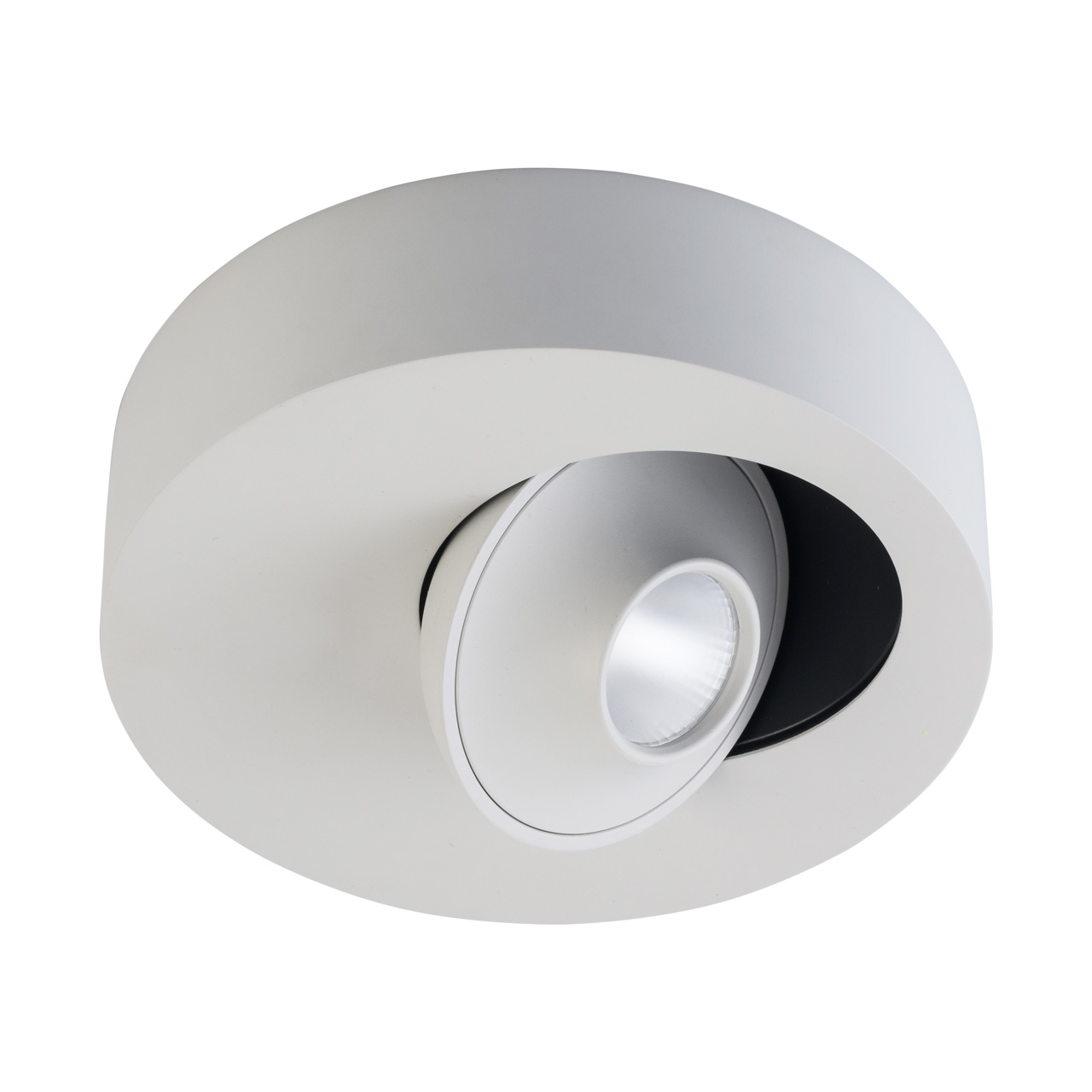 Основание выполнено из сплава алюминия и окрашено в серый цвет. Углубление для световых элементов окрашено в черный цвет. Светодиодные источники света типа COB закрыты белым матовым акрилом. Светильник снабжен инновационным поворотным механизмом.