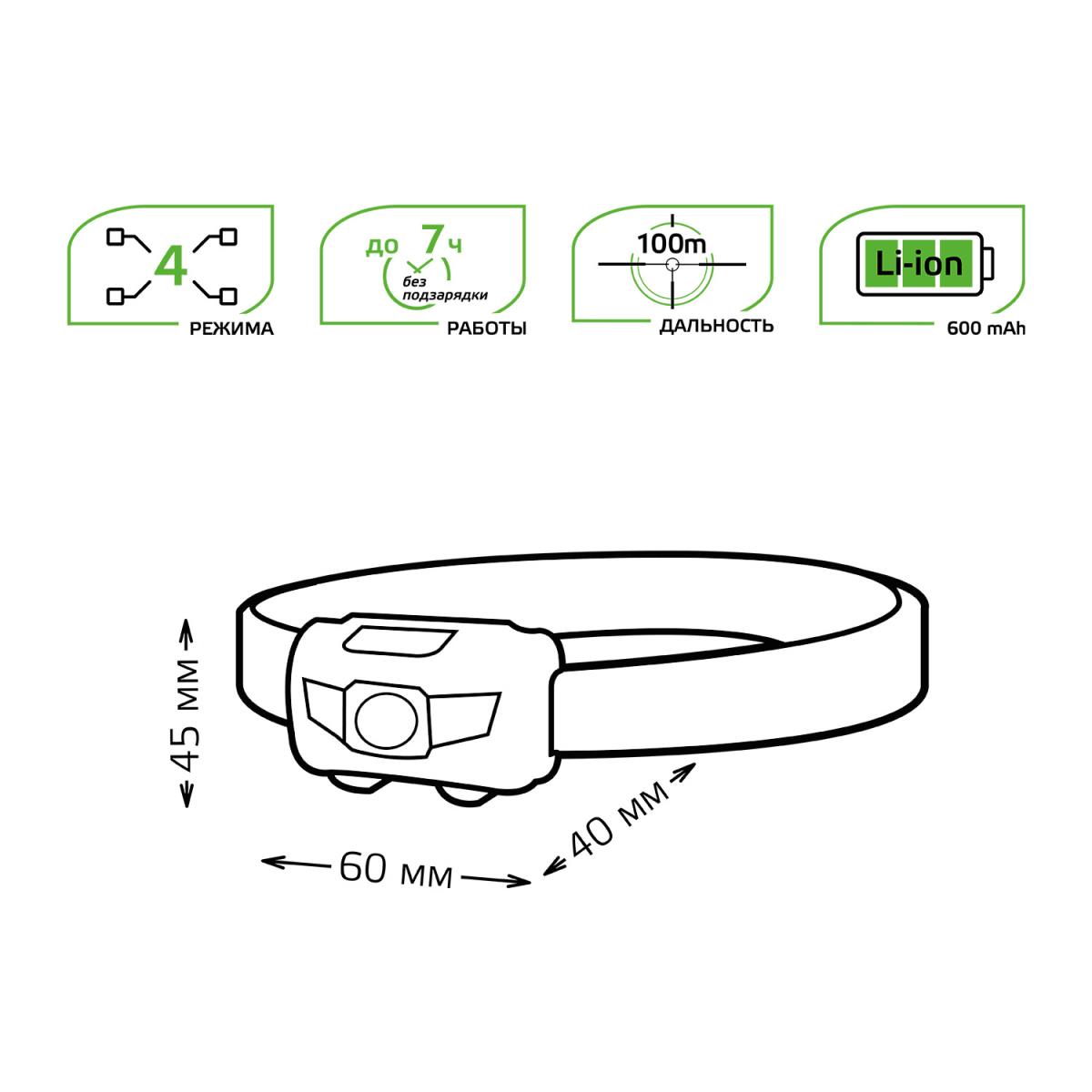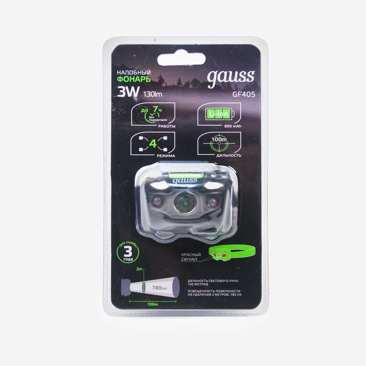 Налобный светодиодный фонарь Gauss аккумуляторный 40х60 130 лм GF405 в Казани