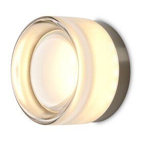 Металлическая арматура в цвете никель в трех рельефных основаниях. Плафоны, выполненные в приглушенно пшеничном и янтарном оттенках, доступны в двух размерах. LED источник света 2400К/2550К/3000K.