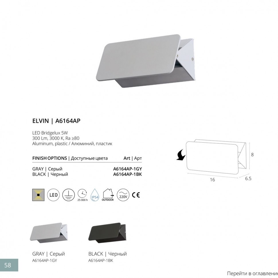 Данную модель A6164AP-1GY с быстрой доставкой спешите купить по цене 870 ₽ в магазине 220svet.ru