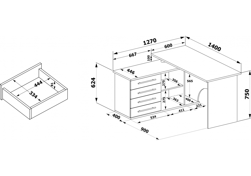- Материал столешницы: ЛДСП