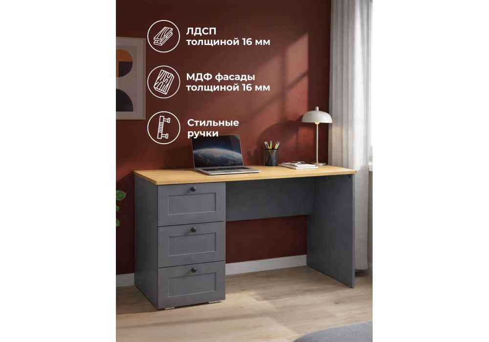 Письменный стол Woodville Опра серый графит / дуб золотой craft 676811 в Казани