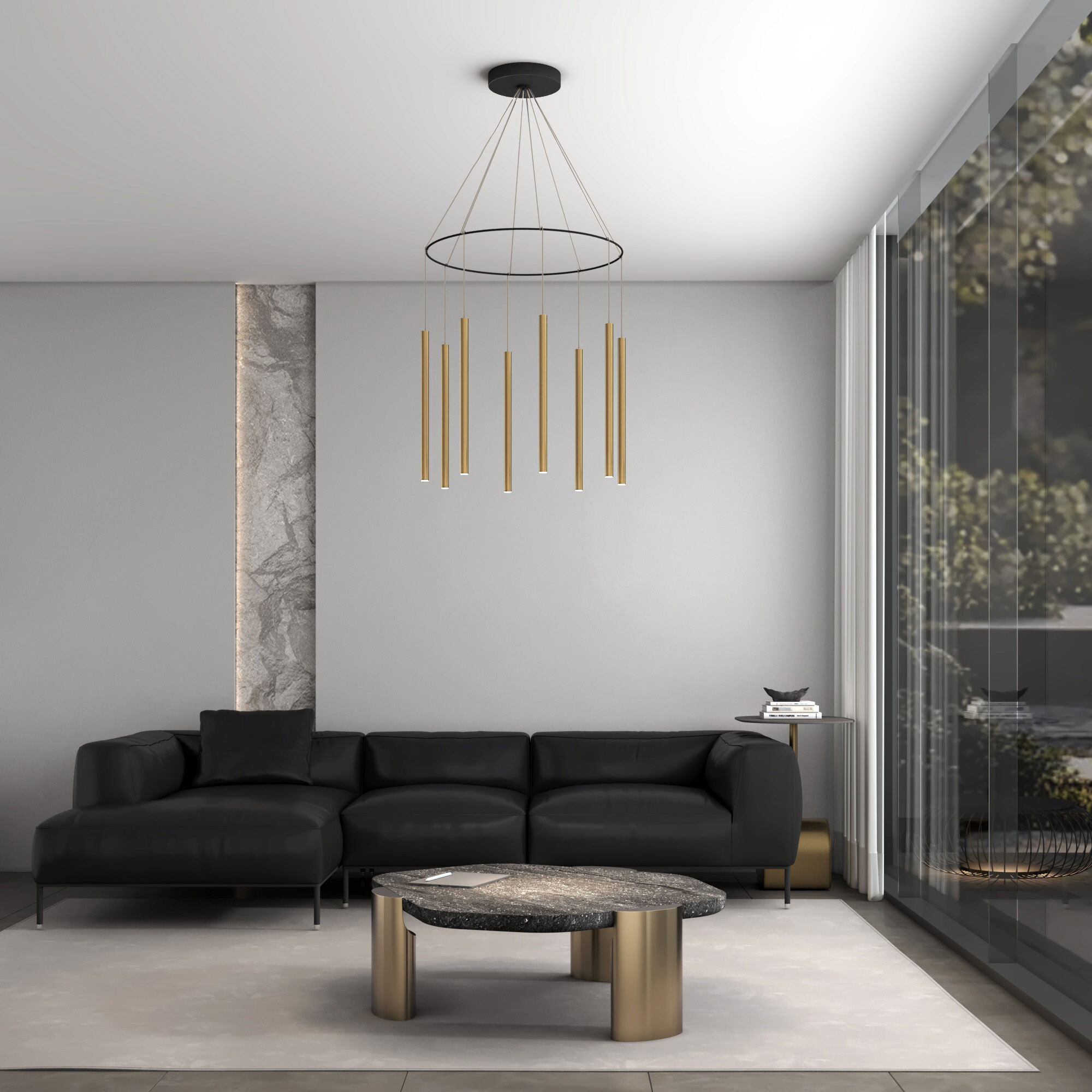 Его конструкция выглядит современно и минималистично, подчеркивая простоту форм и четкость линий. Металлические трубки создают уникальный визуальный эффект, играя светом и тенями, придавая интерьеру ощущение воздушности и легкости.