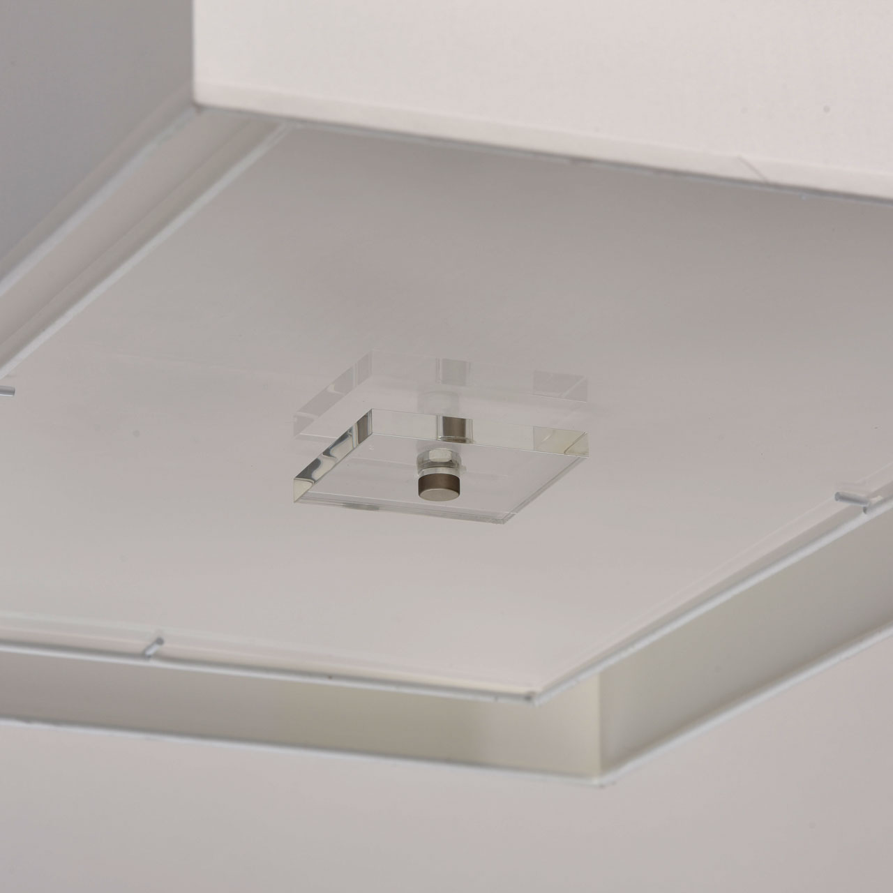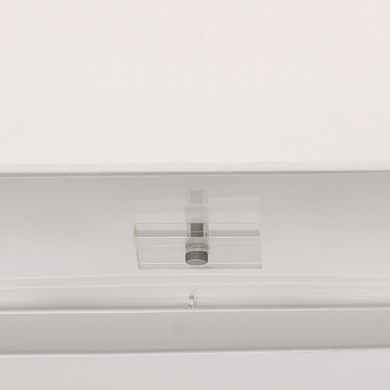 Основание, металл. гальванизировано в цвет сатинового никеля. Абажур: двухслойный текстильный абажур белого цвета с кантом в цвет абажура, изнутри защищен термостойким акрилом. Свет рассеивается матовыми акриловыми вставками. Декор: центральная часть светильника декорирована прозрачным акрилом.