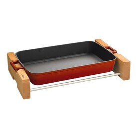 ПРЯМОУГОЛЬНОЕ БЛЮДО 26Х40 СМ И ДЕРЕВЯННАЯ ПОДСТАВКА ДЛЯ СЕРВИРОВКИ КРАСНОГО ЦВЕТА LAVA