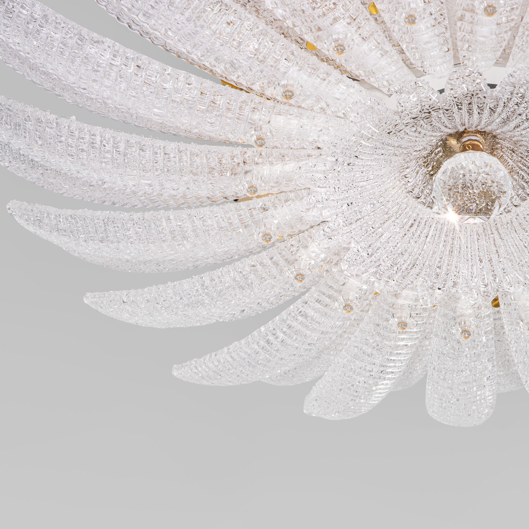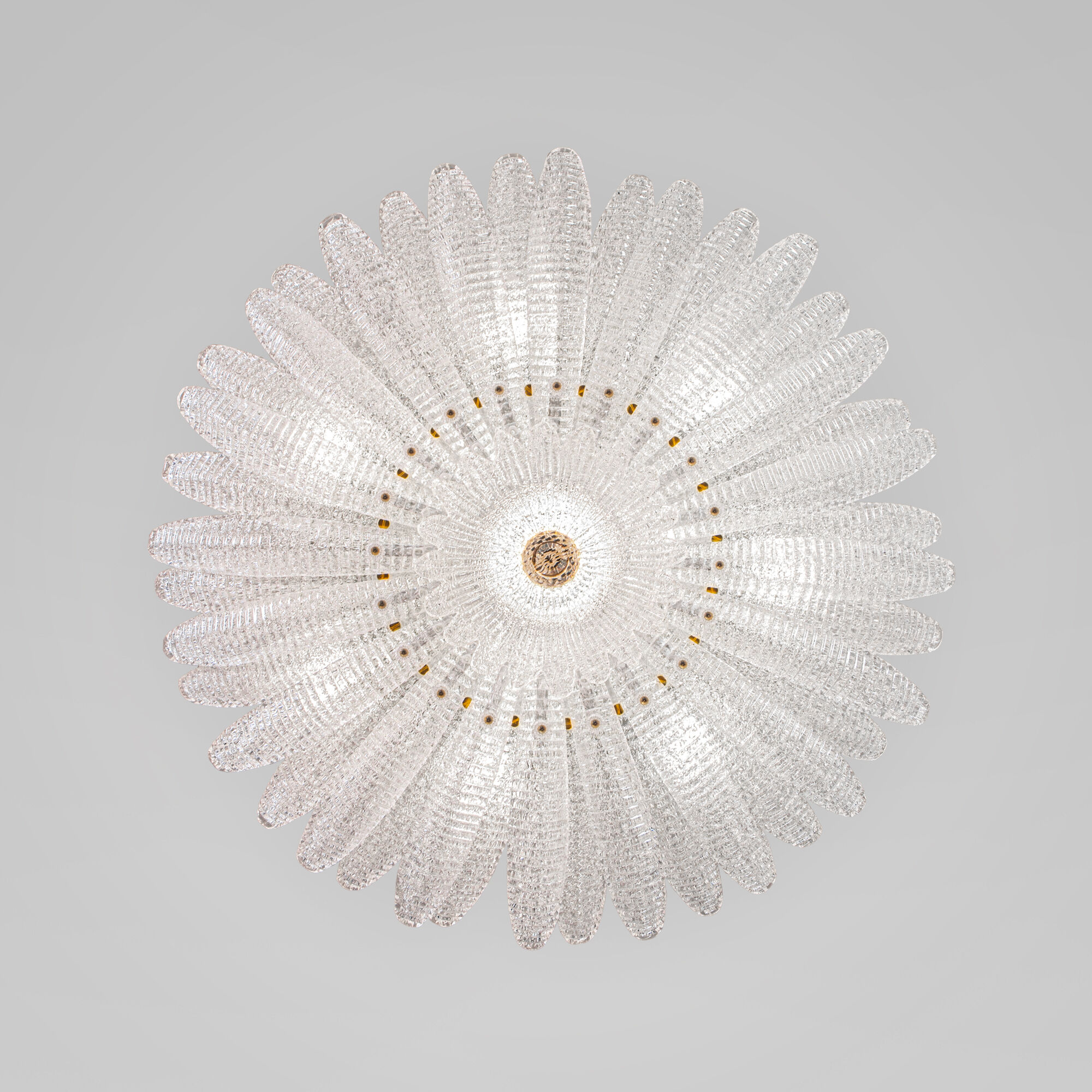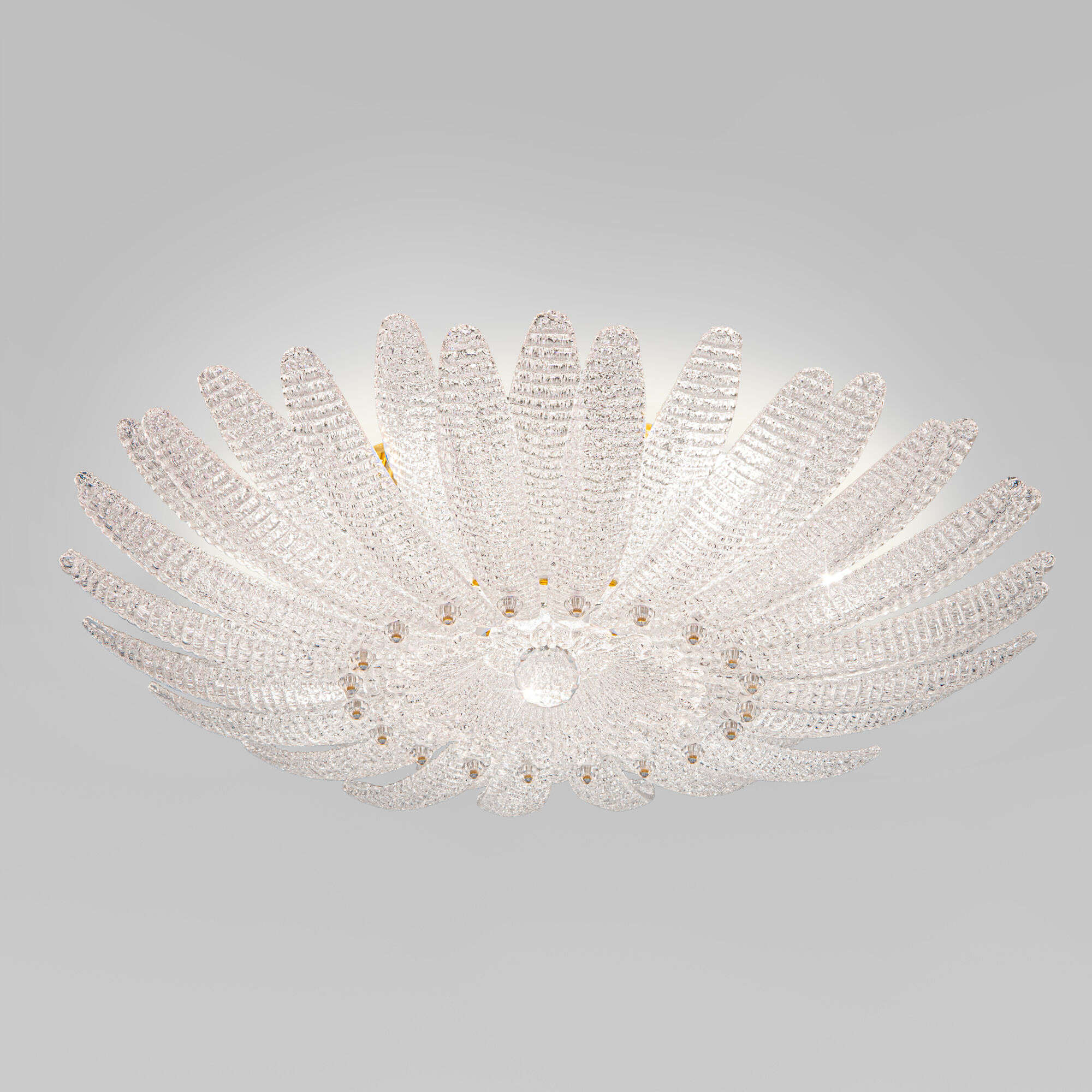 Потолочный светильник в форме цветка — изящное сияние в вашем интерьере. Светильник 101015/10 — не просто источник света, а настоящее украшение пространства. Рельефное стекло с алмазной крошкой создаёт эффект драгоценного цветка, застывшего в вечном цветении. В лучах света он оживает, наполняя комнату атмосферой утончённой роскоши и волшебства.