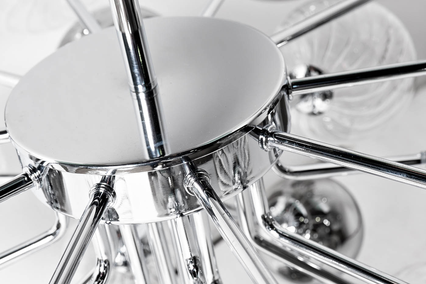 Пространство, в котором живёт человек – лучшее отображение его характера и индивидуальности. Подчеркнуть стиль и оригинальность интерьера поможет современный потолочный светильник. Он гармонично впишется во многие современные интерьеры и послужит завершающим штрихом дизайна. Потолочный светильник со стеклянными плафонами декорирован металлическим шарами – такое дизайнерское сочетание выглядит футуристично и выделяет эту модель среди современных потолочных светильников. Рельефная текстура прозрачных плафонов создаёт мягкое и одновременно насыщенное освещение в комнате.
