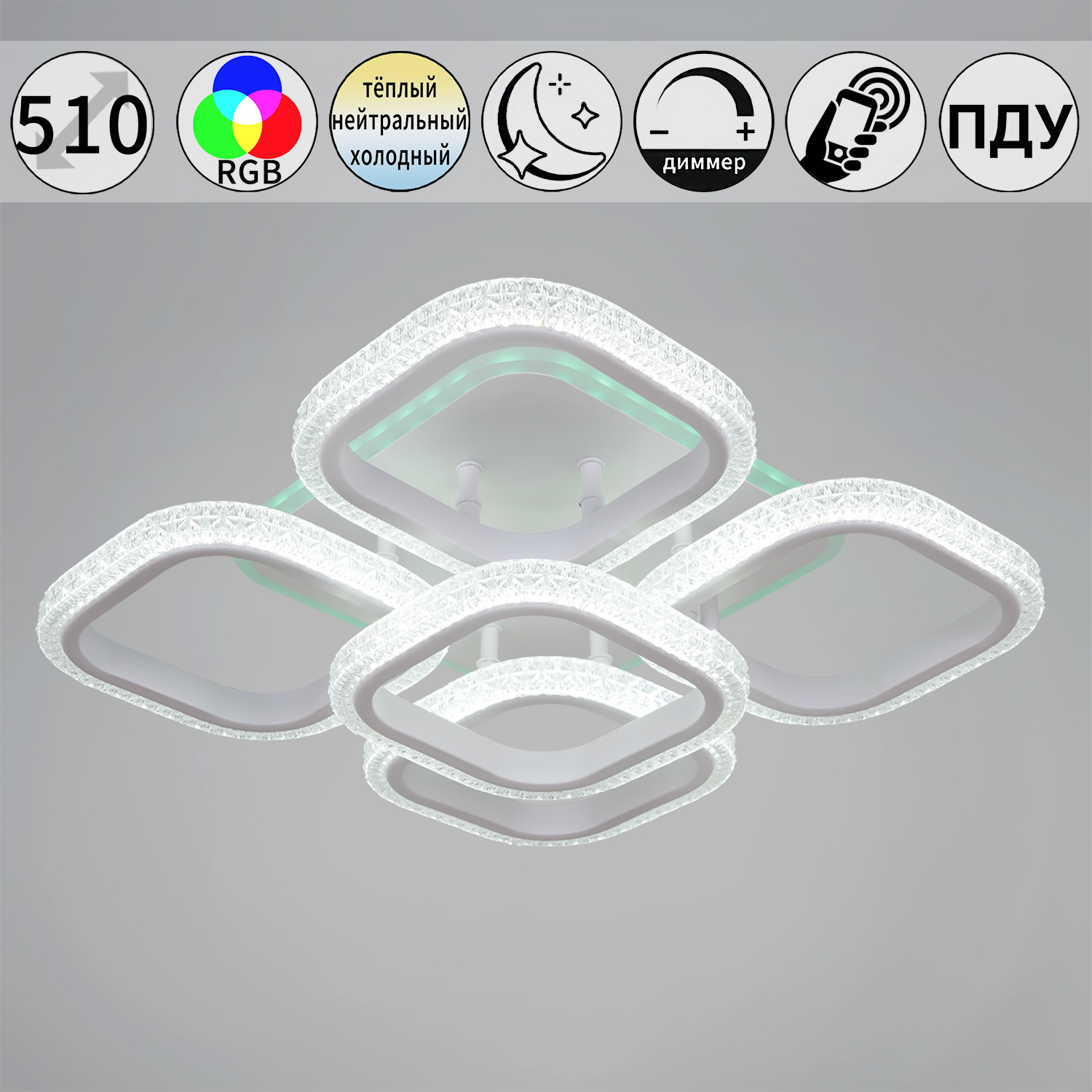 - Технические особенности: С пультом ДУ, С диммером, Управление с телефона