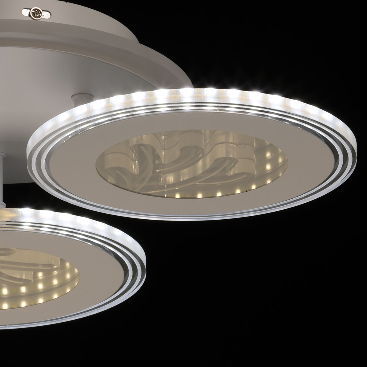 Привлекательная модель 424016304 от немецкого производителя De City относится к коллекции -Мадлен , изумительно подойдет для установки на потолок в стиле хай-тек, в светильнике встроен светодиодный элемент с мощностью 100W освещения помещения составит 22кв.м ,  Материал арматуры металл белого  цвета , плафоны акрил прозрачного цвета . Цветовую температуру можно регулировать с помощью пульта ДУ от 3000-6500К , люстра подходит для натяжного потолка  крепление на планку, люстра декорирована прозрачным акрилом с 3D-эффектом..Данную модель 424016304 спешите купить в интернет-магазине 220svet.