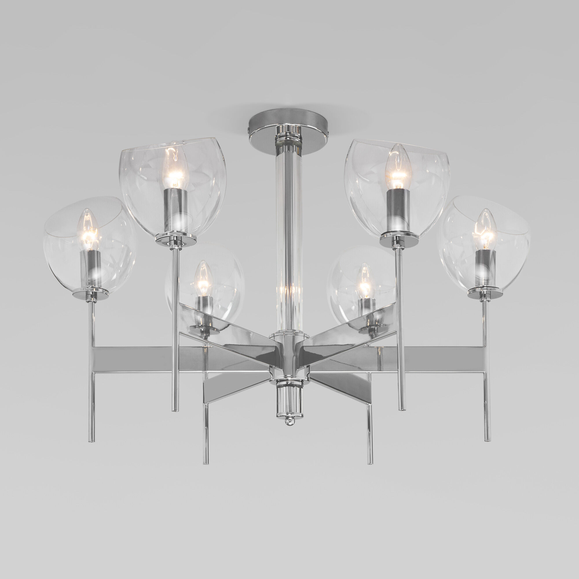 Организовать качественное освещение вам поможет современная потолочная люстра со стеклянными плафонами 60130/6 хром. Простые минималистичные формы и умеренные тона станут прекрасным дополнением для вашего помещения.