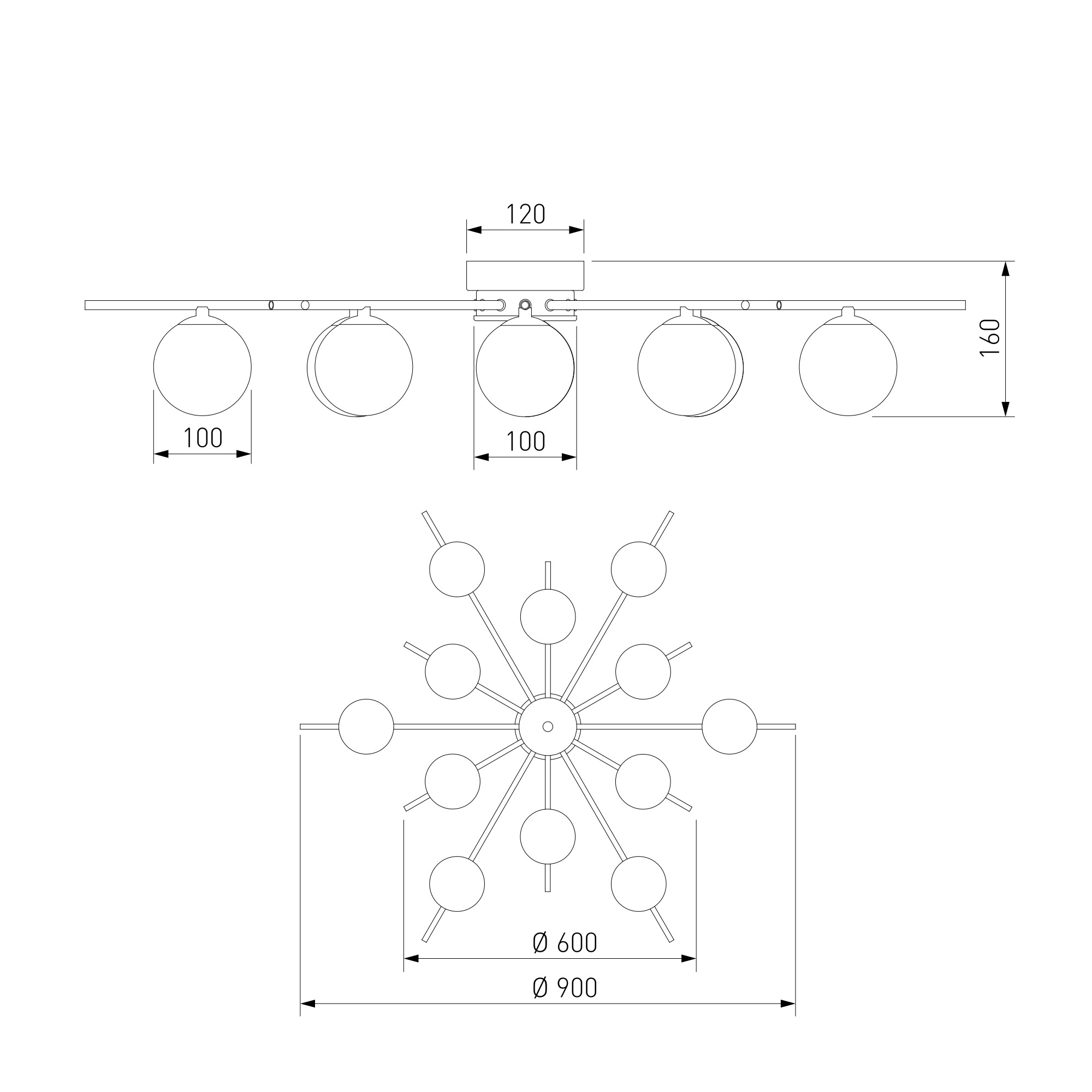 • Направление плафонов: Плафон вниз