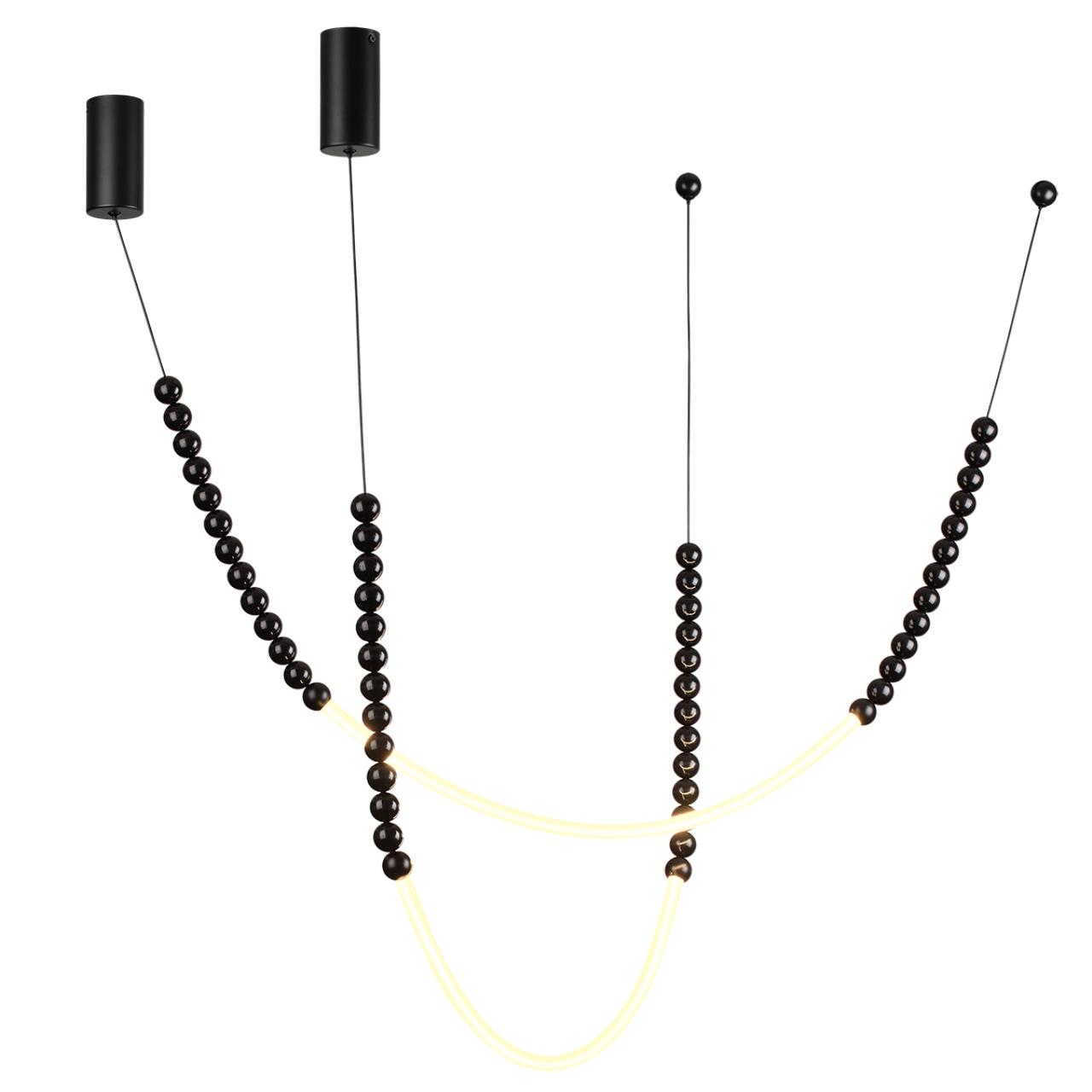 Monella — оригинальная форма большой серии светильников в легком игривом дизайне с использованием черных полированных шариков из акрила. В светильнике используются оргинальные фиксаторы к потолоку в виде россыпи маленьких металлических шариков, которые можно расположить на любом удалении от центра светильника и, таким образом, создать свою форму.