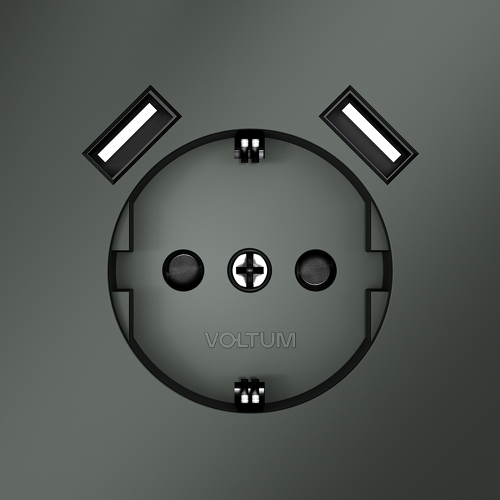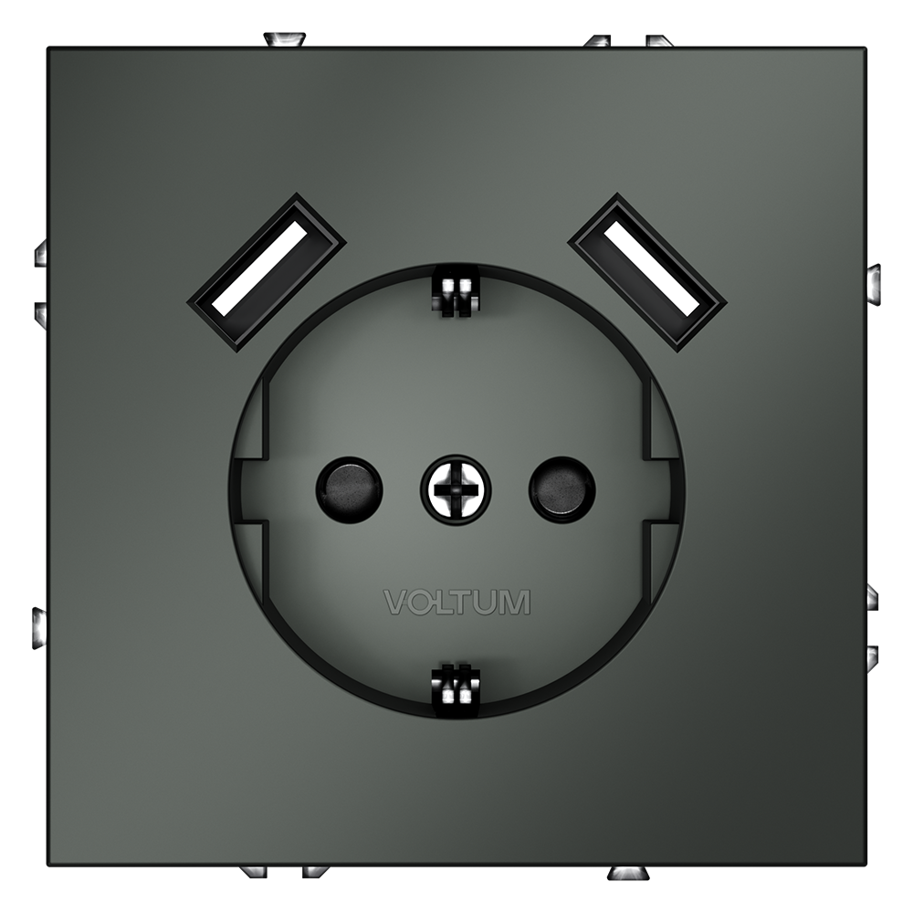 Купить "Розетка встраиваемая с заземлением и защитными шторками, 16А, с USB, A+A Voltum S70 VLS040406 (титан)"