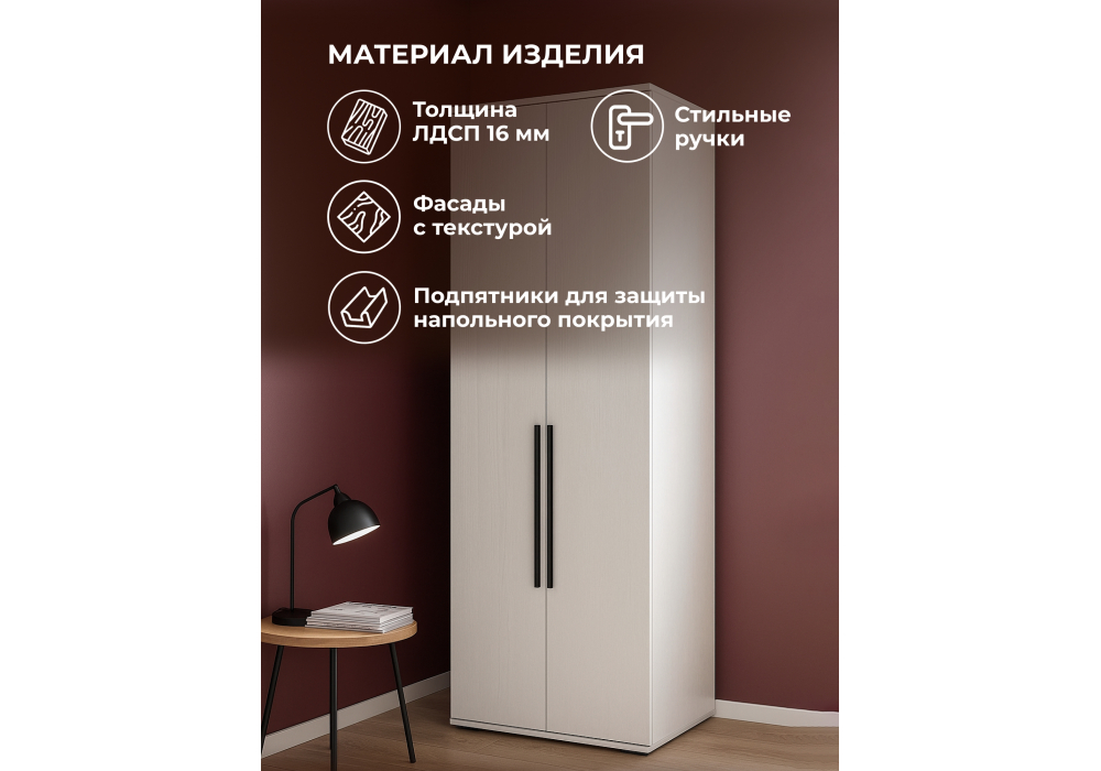 Материал каркаса - ЛДСП; Ширина - 66,4; Глубина - 48,4; Высота - 186,2;
