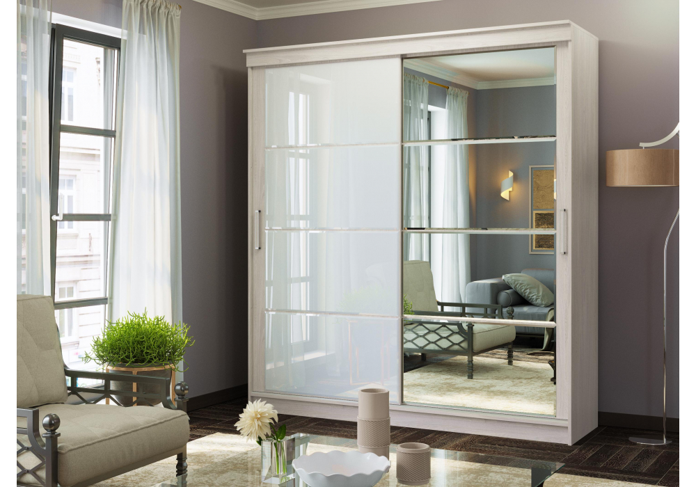 Шкаф-купе Woodville Москана-2 анкор светлый / зеркало / лакобель белый 614770 в Казани