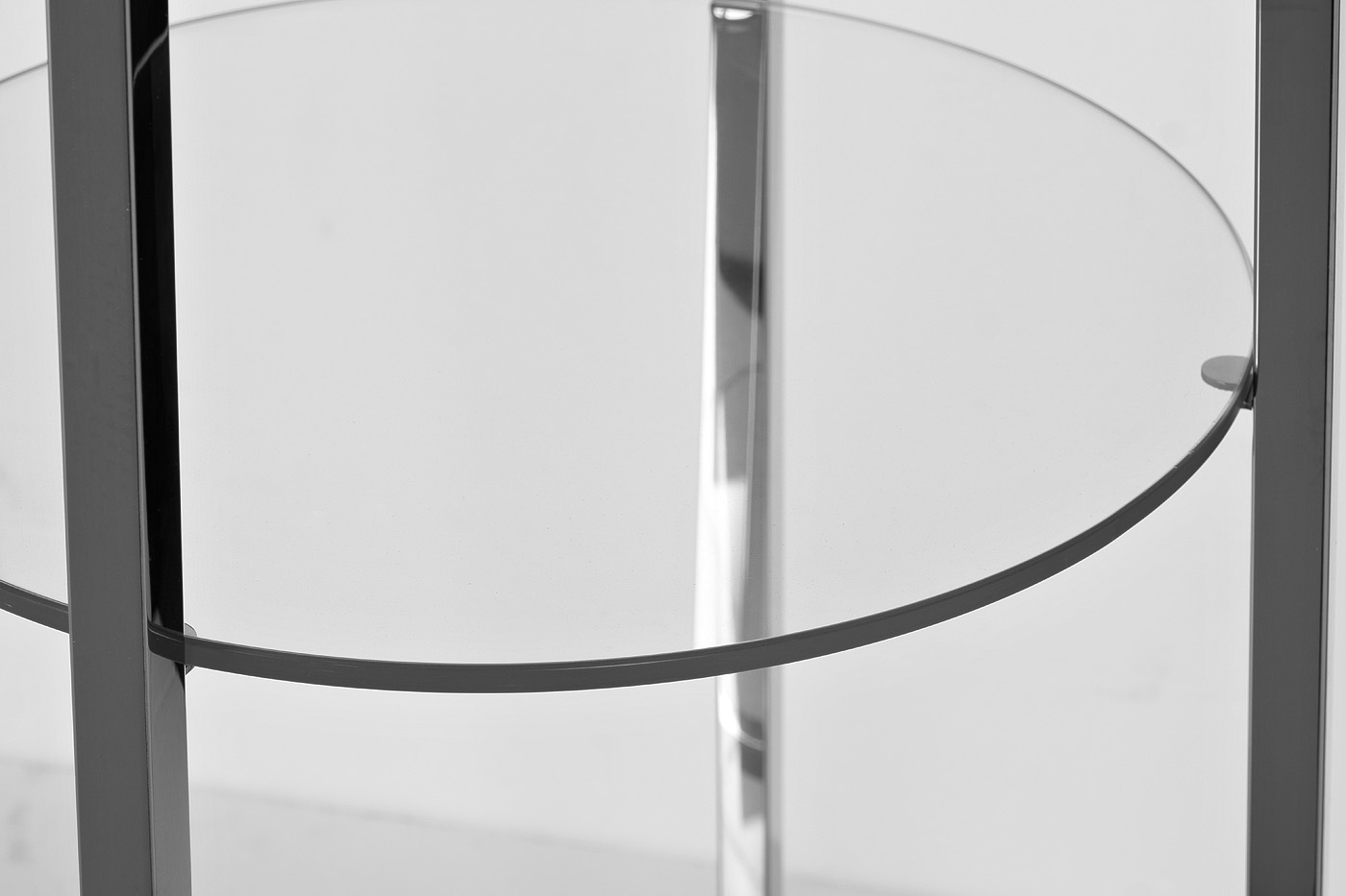 Если есть необходимость иметь что-то под рукой, при этом экономить пространство или эффектно представить особенные артефакты или цветы, то для этой цели подойдет стеллаж с круглыми полками. Толщина полок из прозрачного закаленного стекла - 8мм, расстояние между полками - 43см.