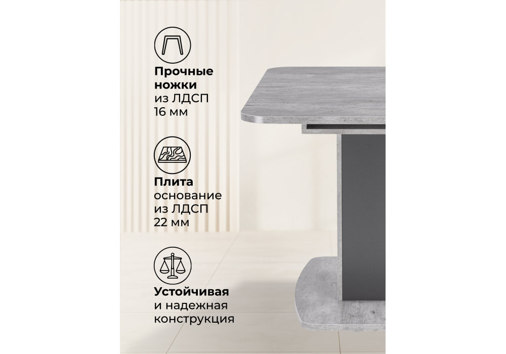 Толщина столешницы: 2,2 см. Материал каркаса - ЛДСП; Ширина - 75; Высота - 76; Длина стола в разложенном виде - 152; Длина - 120;