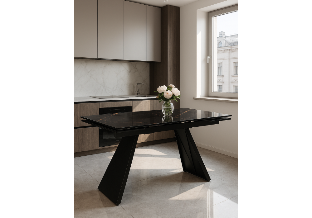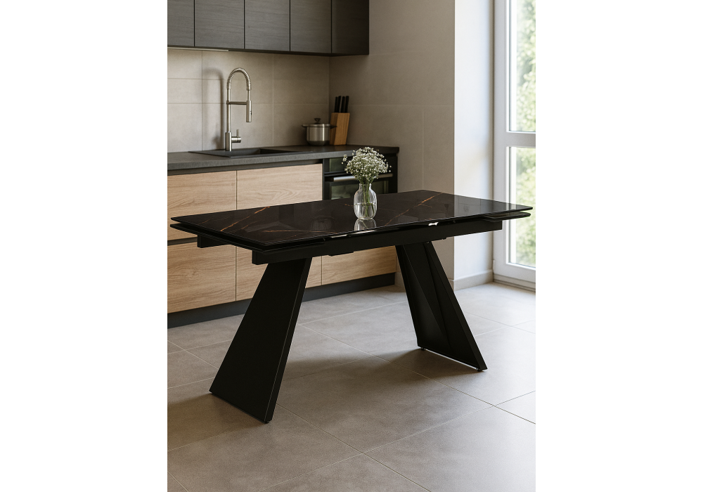 Стол стеклянный раздвижной Woodville Хорсборо 140(200)х80х79 обсидиан / черный 588007 в Казани