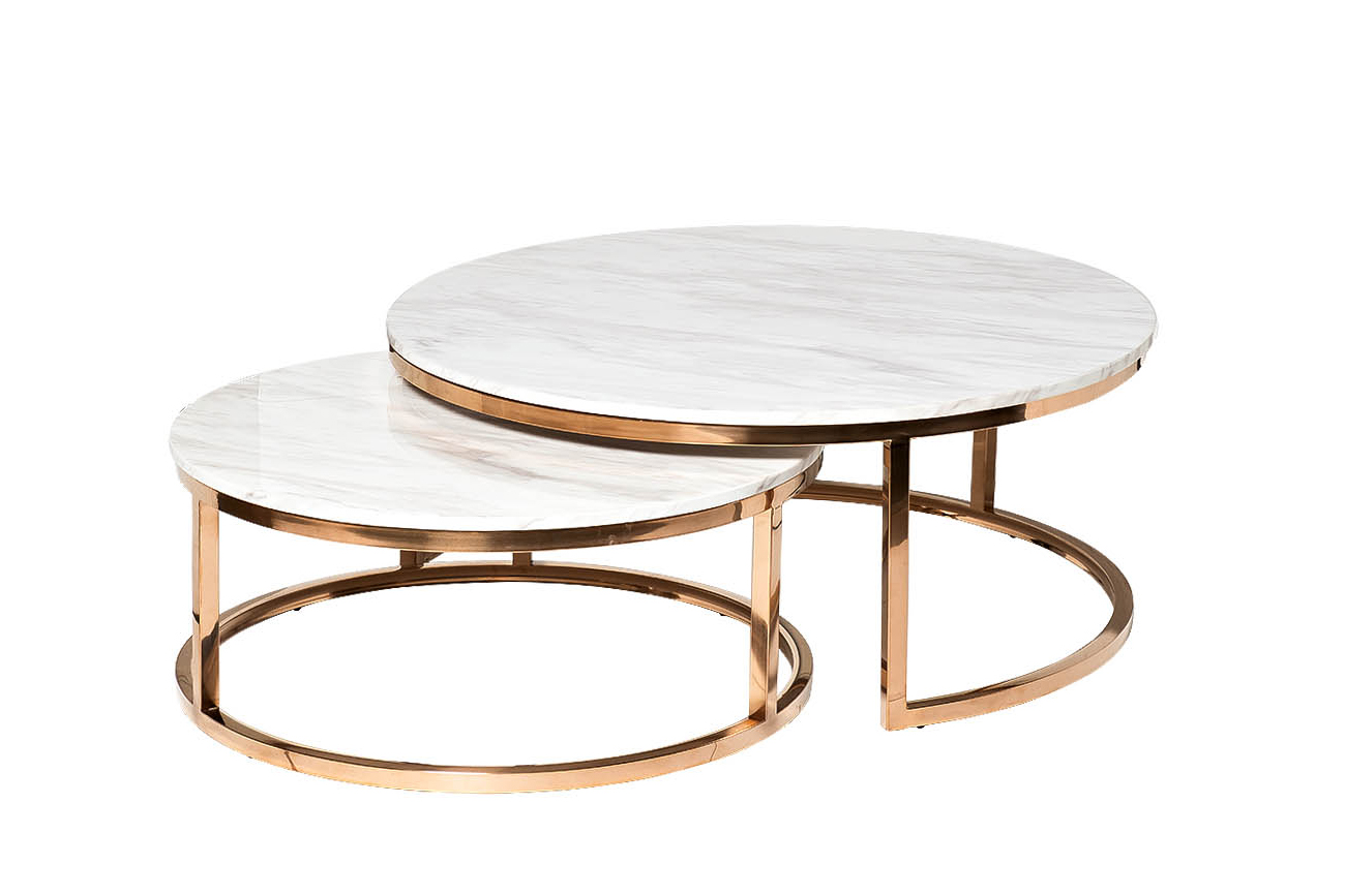 Комплект журнальных столов для гостиной – удачный выбор для посиделок с друзьями или семьей. Предметы сделаны по принципу матрешек. Эти круглые журнальные столы немного различаются размерами. В результате один из них удобно задвигается под другой, экономя пространство. При необходимости столики можно раздвинуть, если у вас намечаются гости. Такой набор журнальных столов выглядит необычайно стильно и презентабельно. Мебель выполнена со вкусом, отвечает современным требованиям качества. В состав входит нержавеющая сталь и искусственный мрамор. Высокое качество материалов обуславливает длительную эксплуатацию предметов интерьера без потери их качеств.