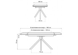 Керамический стол раскладной Woodville Мэриан 120(180)х80 carmen light grey / черный 625719