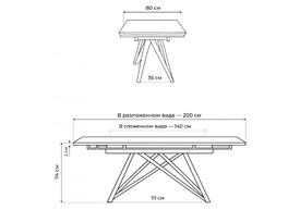 Керамический стол раскладной Woodville Вейв 140(200)х80 серый мрамор larka grey / черный 626003