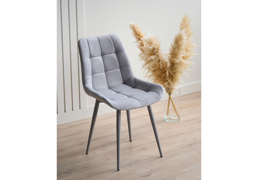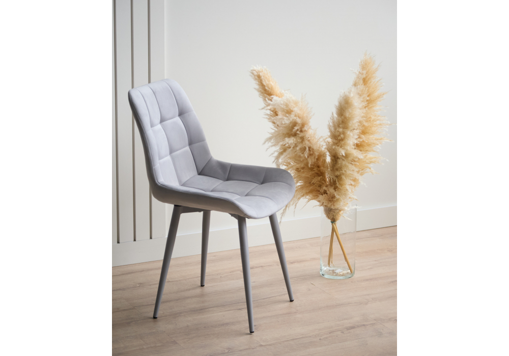 Материал каркаса - металл; Материал сиденья - велюр; Материал обивки - велюр; Цвет ножек - серый; Ширина - 50; Глубина - 60; Высота - 80; Ширина сиденья - 44; Глубина сиденья - 41; Высота сиденья - 48;