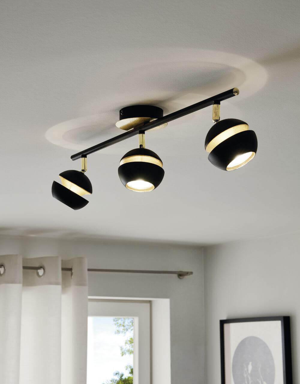 Спот черного цвета. Модель 95484, из коллекции Nocito от Австрийского производителя Eglo. Светильник состоит из 3 плафонов, форма которых, и выполнены они из металла, корпус светильника изготовлен из из металла.  Производитель рекомендует приобретать для светильника лампочки Светодиодные (LED) с цоколем GU10 мощностью 4W.