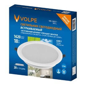 Встраиваемый светодиодный светильник Volpe ULM-Q237 18W/6500K WHITE UL-00013164