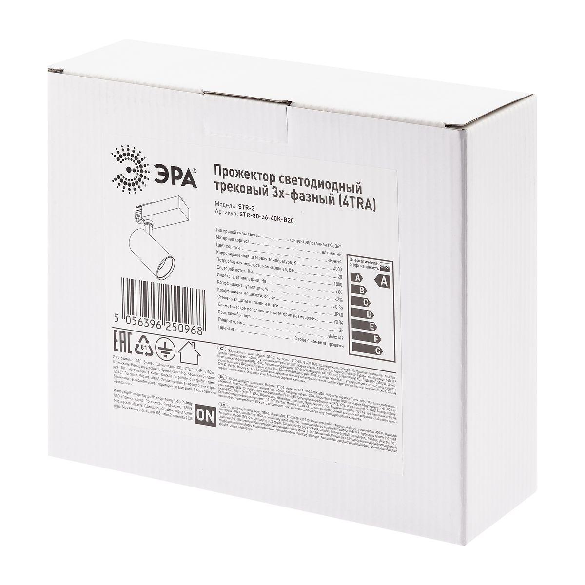 Трековый светодиодный светильник ЭРА SТR-30-36-40K-B20 Б0049763 в Казани