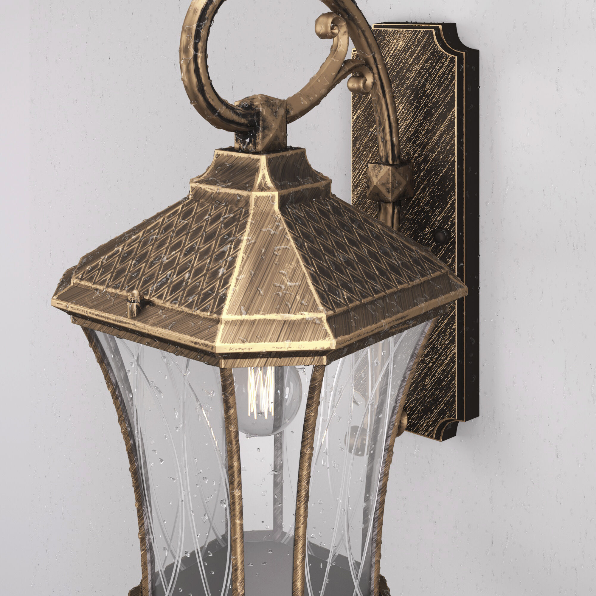 Корпус светильника выполнен из высококачественного и прочного металла с надежным покрытием. Уличный светильник Virgo D черное золото IP44 легко монтируется при помощи крепежной планки, которая обеспечивает надежную фиксацию светильника на стене.