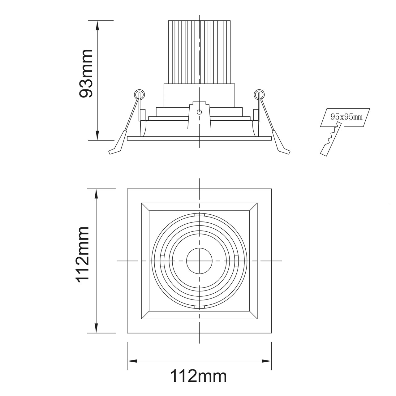 - Диаметр врезного отверстия: 95*95 мм