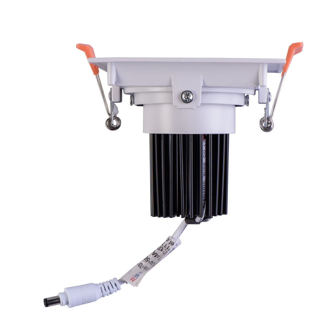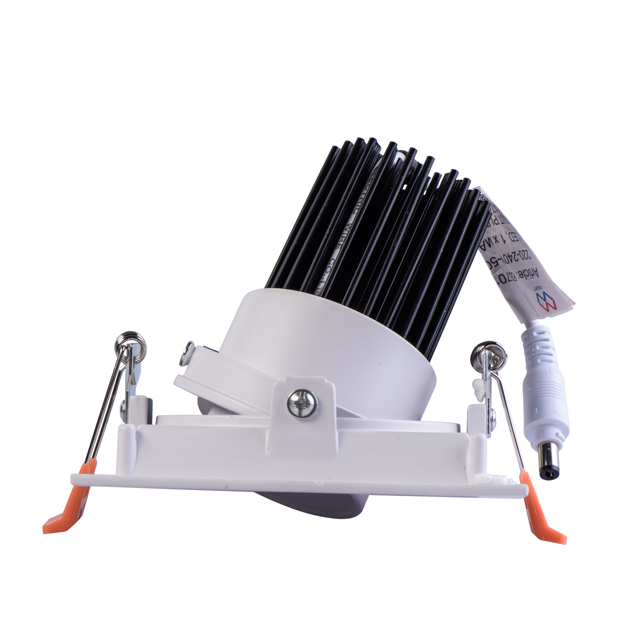 Корпус изготовлен из белого алюминиевого сплава. За счет наличия поворотного механизма можно контролировать угол светового потока. Спот подходит как для потолка, так и для стен. В качестве источника света использован светодиод типа СОВ со сферолитной оптической линзой.