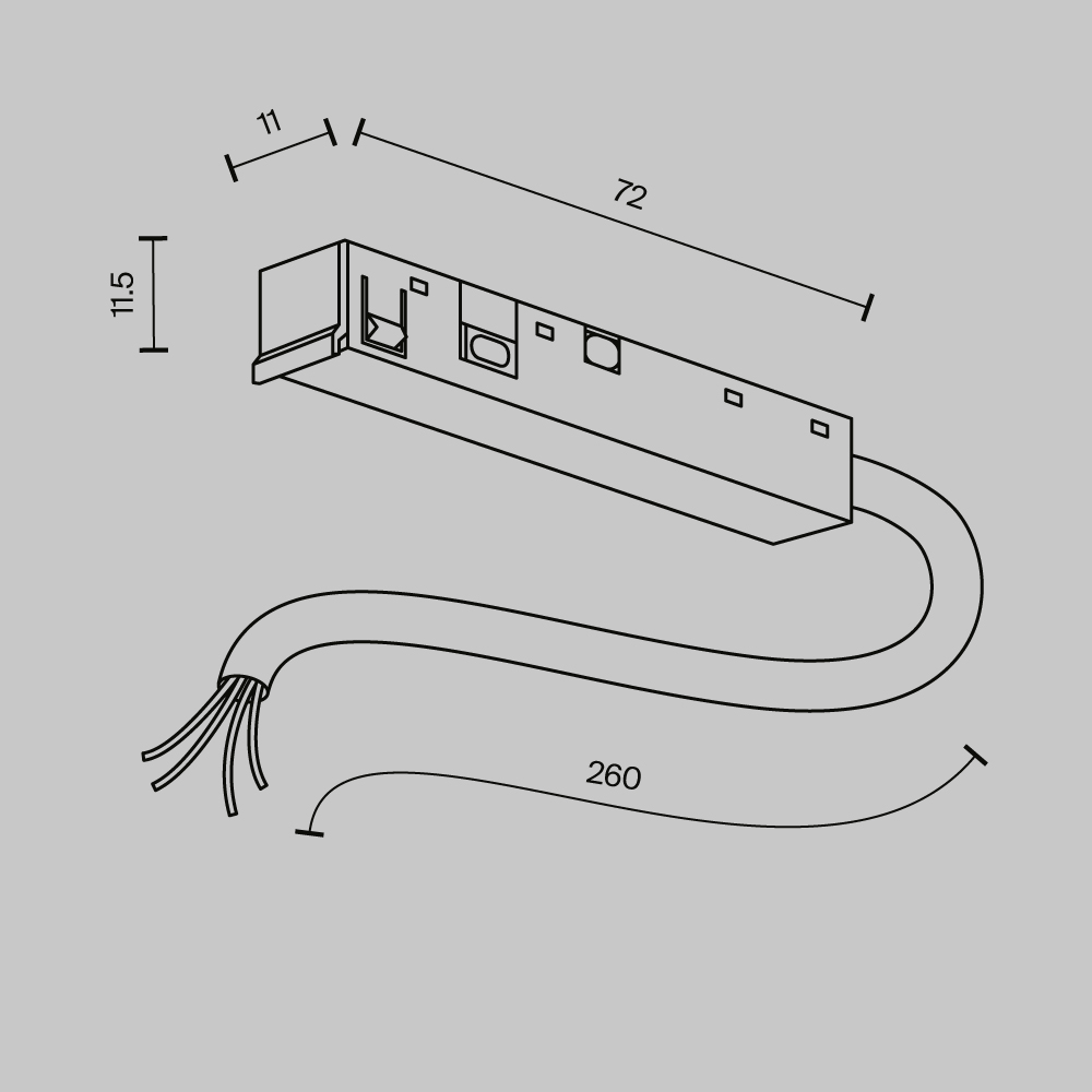 Комплектующие для монтажа: угловые коннекторы (накладные и встраиваемые), соединители, вводы питания, заглушки, декоративные накладки и антибликовые фильтры. Угловые коннекторы создают ровные углы 90° без запила шинопровода. Все элементы в черном цвете, без видимых проводов. Напряжение DC 48V. Гарантия 2 года.