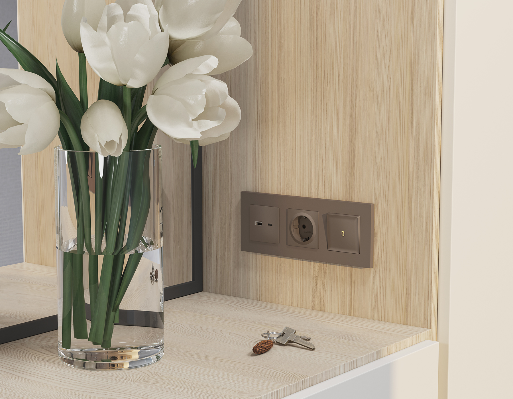 Многогранный ассортимент Ambrella Volt включает в себя механизмы, лицевые панели и рамки, а также комплекты, доступные в различных цветовых решениях. Продукция представлена в модульном исполнении, что позволяет гибко настраивать внешний вид и функциональность. Вам будет легко заменить лицевую панель, рамку или механизм, найдя идеальное сочетание цветов.